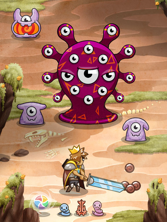 With our wild imagination and by being influenced for a little of everything, the colorful world of Smash IT! Adventures was crafted and we have been introducing some funky characters such as the Blarghinis, the evilness of the game, and Agnes, a little witch that summons the Player to save her beloved cat Mr. Bica and at the same time, that can even save the world.
